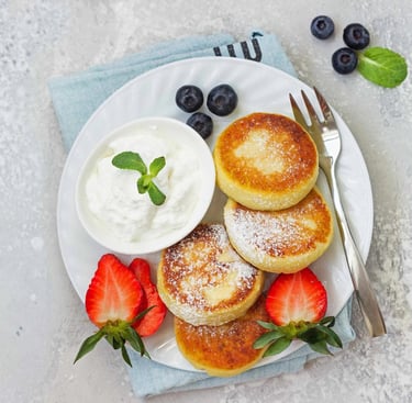 Подавайте гарячими зі сметаною, медом, згущеним молоком, ягодами, улюбленим джемом або солодким соусом.